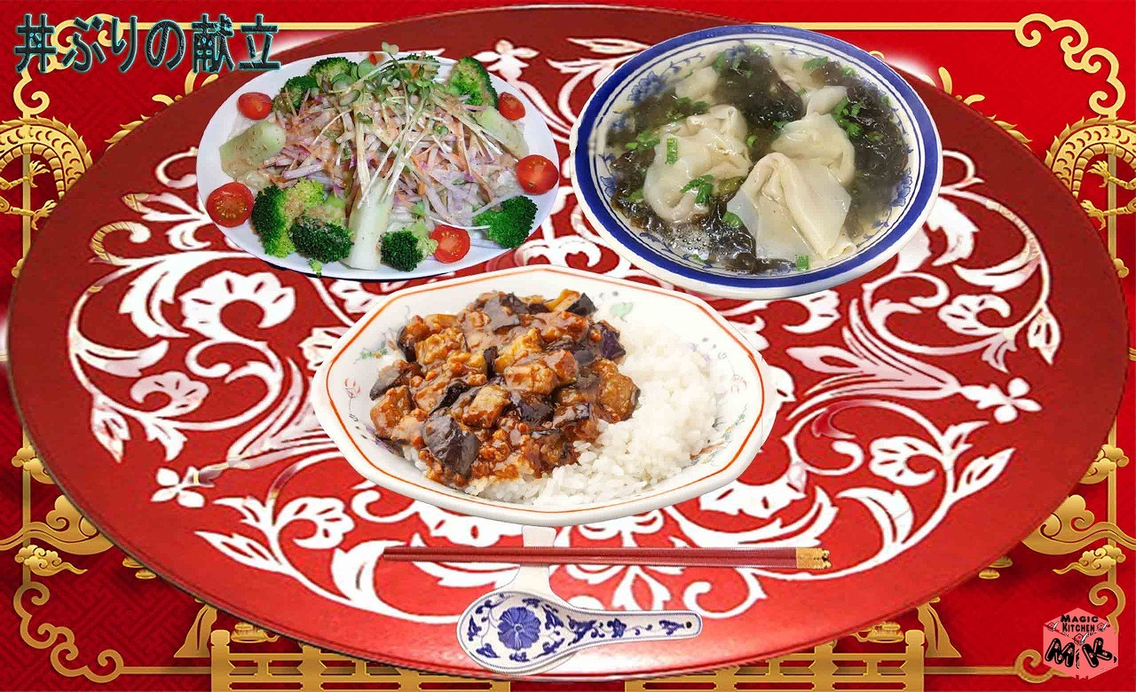 麻婆茄子自体に色々な野菜を組み合わせて丼ぶりにすればスープだけでも立派な献立になります。