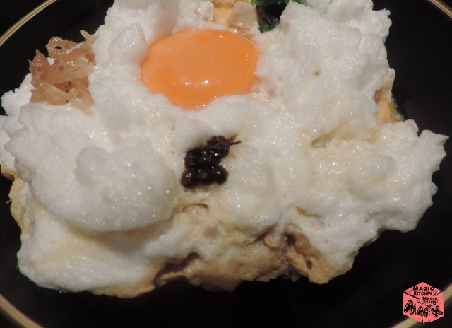- ④焼き鳥×温泉玉子×青ネギ=焼き鳥親子丼