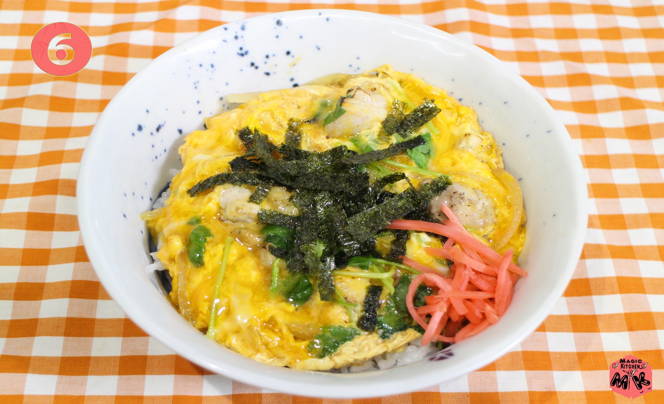 - ①唐揚げ×卵×三つ葉=唐揚げ親子丼