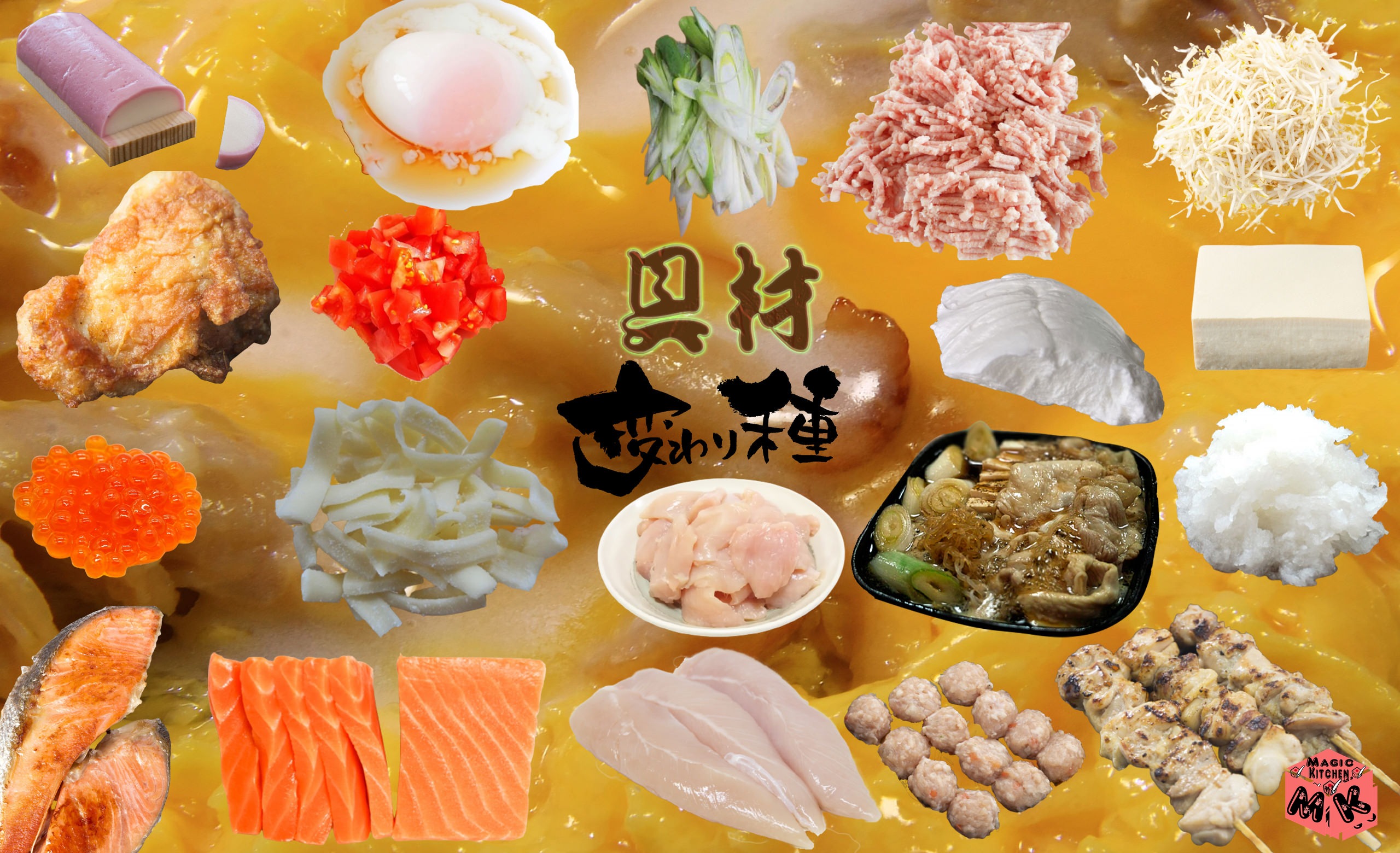 ここでは、具材が完全に変わってしまうと、卵とじになってしまうので、親子丼(鶏肉×卵)での変わり種をピックアップしています。