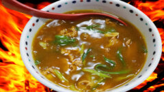 こちらのスープは鶏がらスープの素と濃い口しょうゆ、ごま油だけで味を付けたシンプルなスープです。