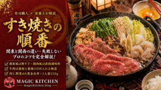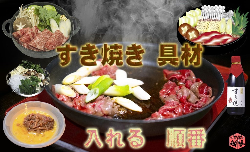 マジックキッチンでは、オーソドックスな変わり種を紹介していますが、変わり種はその他にも合わせれる具材があるので(例えばゆり根、〆であればパスタなど)、自分の好きな具材を見つけるるのもすき焼きの魅力です。