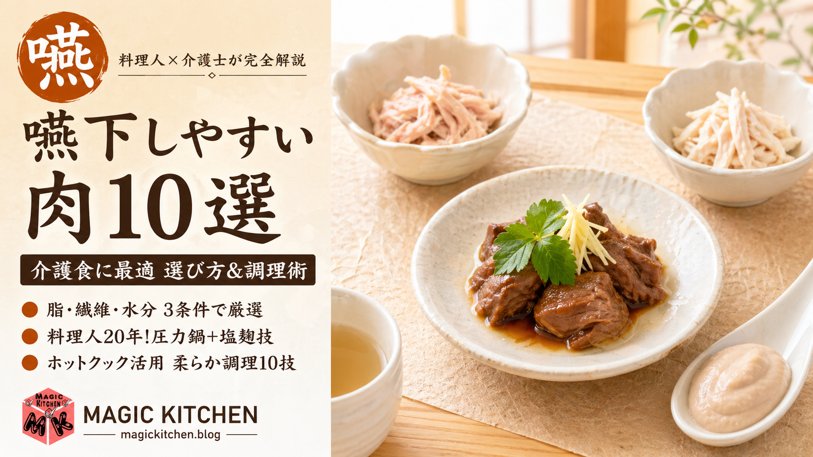 前回ご好評いただいた「嚥下しやすい魚10選」の介護食辞典・第2弾として、今回は嚥下しやすい肉10選を完全解説しますね。